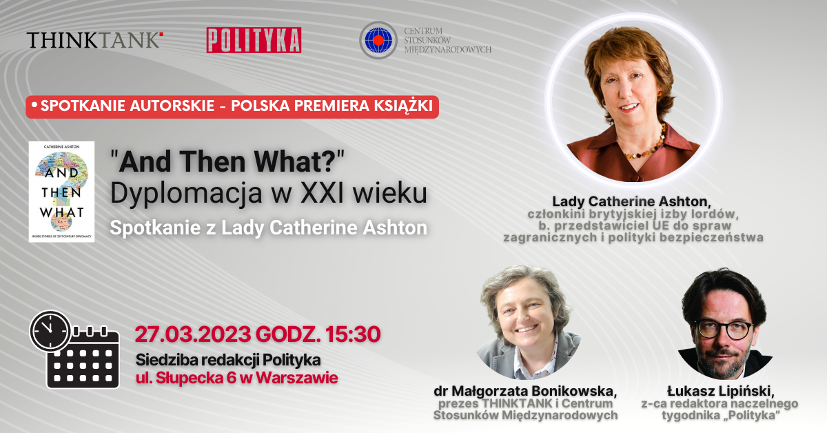 Zapraszamy na spotkanie autorskie połączone z polską premierą książki "And Then What?" Lady Catherine Ashton.