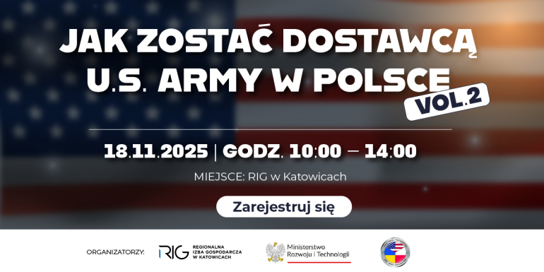 Regionalna Izba Gospodarcza w Katowicach zaprasza na drugą edycję spotkania "Jak zostać dostawcą U.S. Army w Polsce?", które odbędzie się 18 listopada 2025 roku o godz. 10:00 w siedzibie RIG w Katowicach.