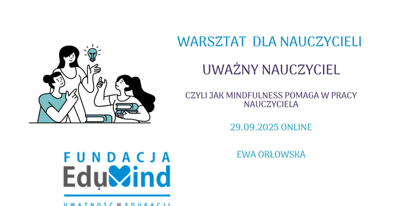 Prowadząca: Ewa Orłowska - doświadczona nauczycielka programów mindfulness i compassion, superwizorka. Jest współzałożycielką Fundacji EduMind Uważność w Edukacji