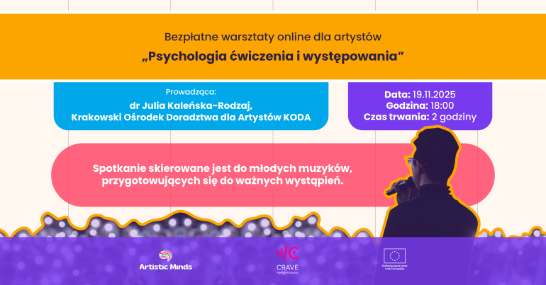 Celem spotkania jest wsparcie muzyków w budowaniu zdrowej relacji z praktyką ćwiczenia i występowania oraz rozwijanie życzliwej, wspierającej postawy wobec siebie w procesie artystycznym.