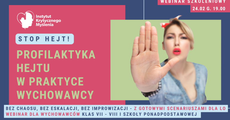 Webinar szkoleniowy "STOP HEJT! Profilaktyka hejtu w praktyce wychowawcy"