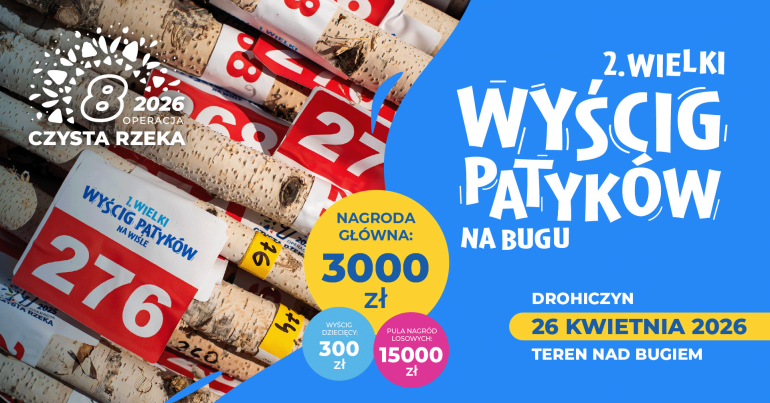 2. Wielki Wyścig Patyków odbędzie się 26 kwietnia 2026 r. w Drohiczynie (woj. podlaskie) nad rzeką Bug, w ramach Akcji Głównej Operacji Czysta Rzeka.