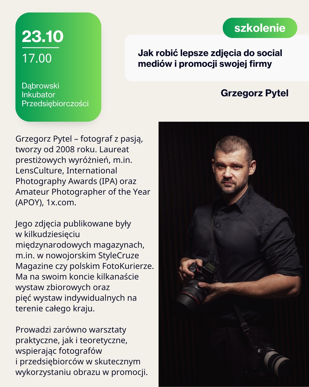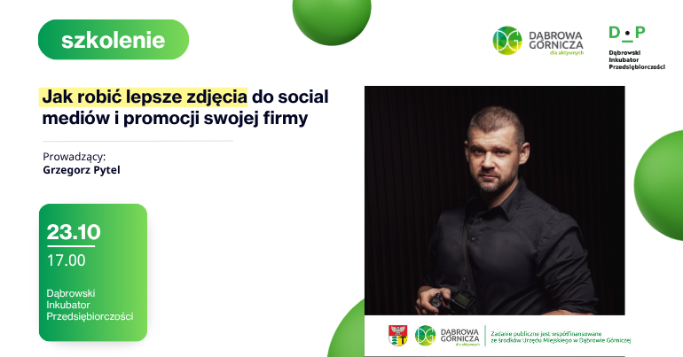 23.10 Szkolenie Jak robić lepsze zdjęcia do social mediów i promocji swojej firmy Prowadzący: Grzegorz Pytel